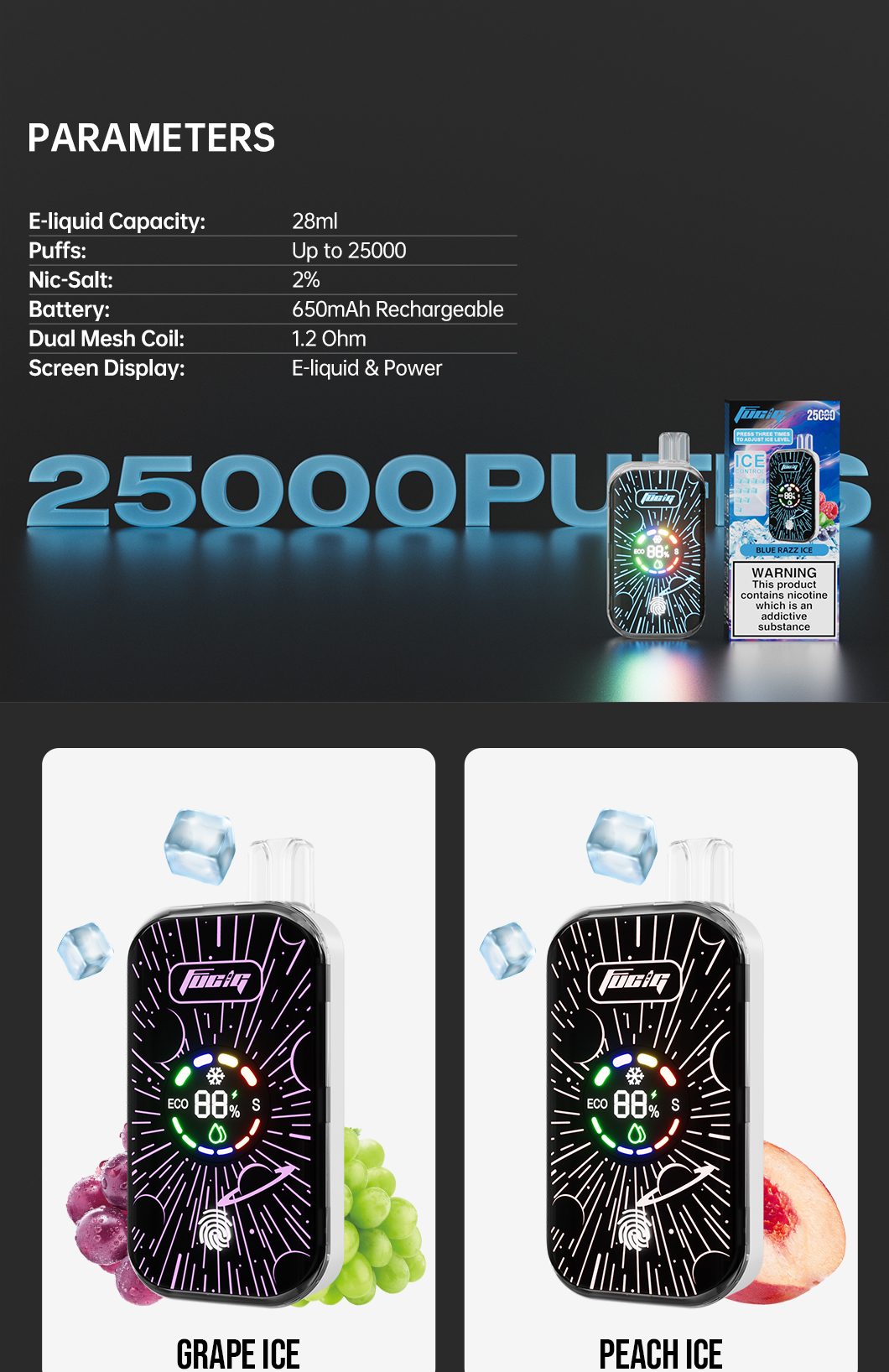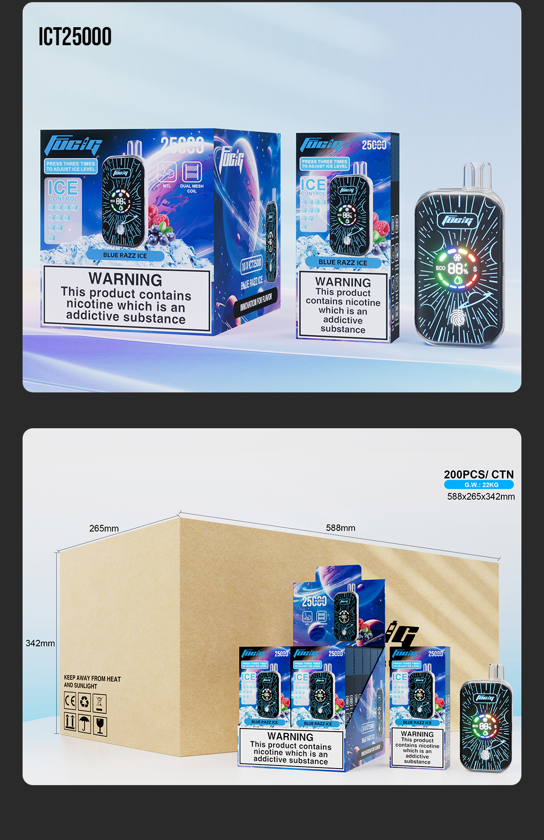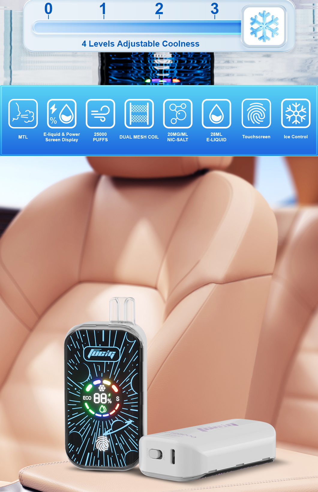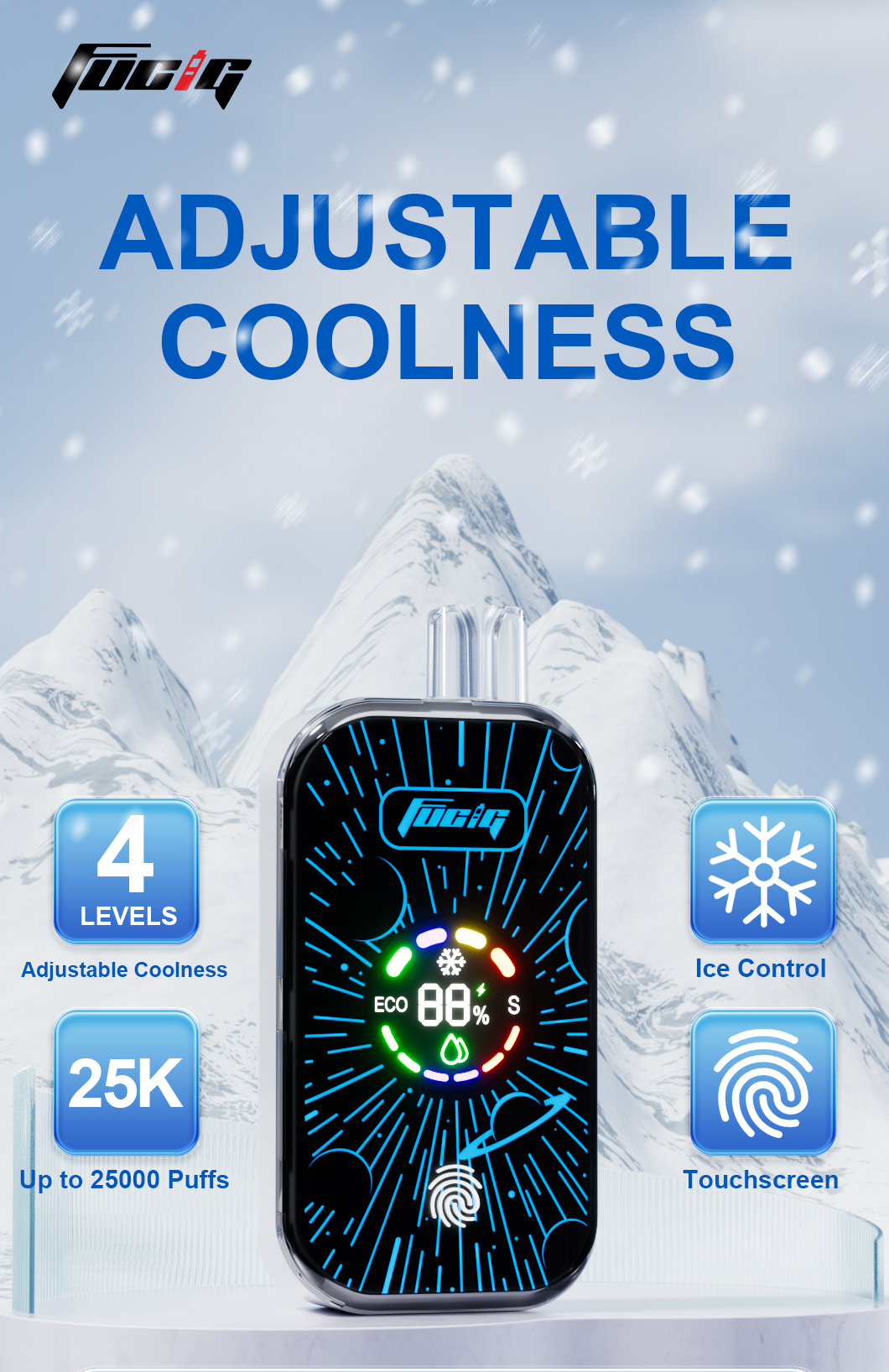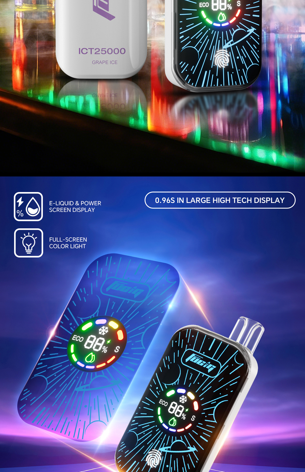 Fucig Ict25000 Ice Control Touch Screen Disposable Vape 2% Nic Puffs Rechargebale Full Color Screen Display Ecigarette Mint Ice